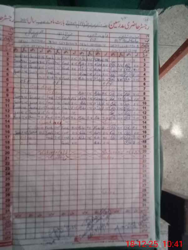 | CNIC | Full Name | Designation | R/C | Absence During Last Calender Month |