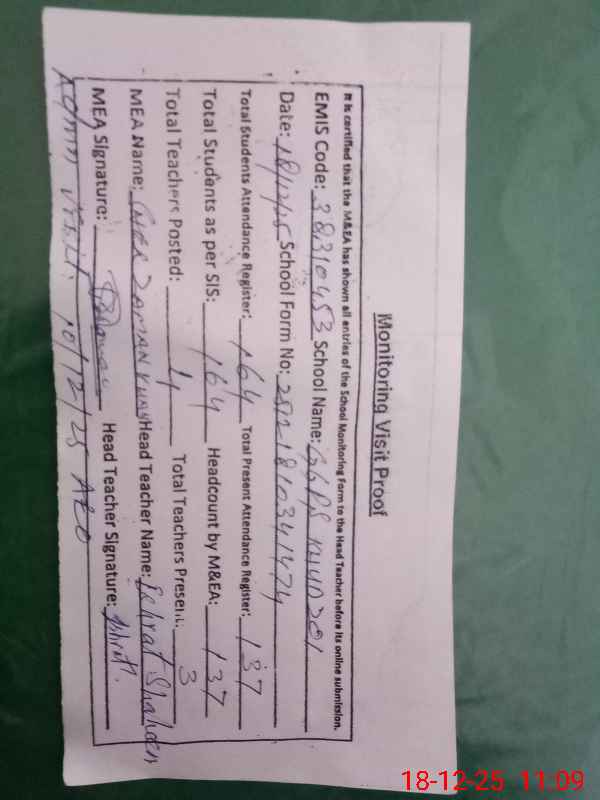 | Attendance Register | Head Teacher | MEA with School | Visit Proof |