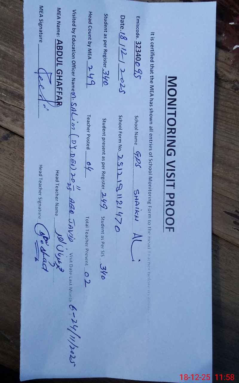 | EMIS Code: 32340095 | Name of School: GPS SHEIKH ALI | |||