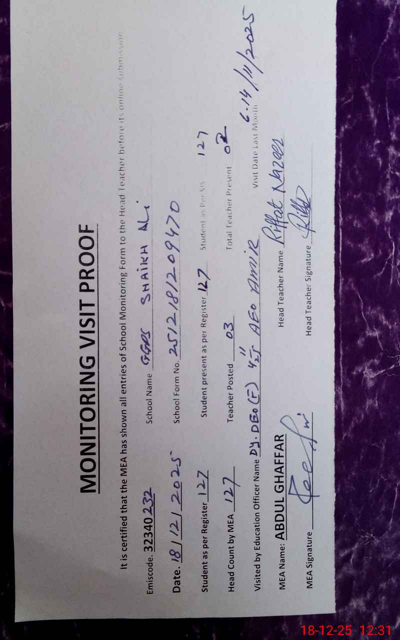 | EMIS Code: 32340232 | Name of School: GGPS SHEIKH ALI | |||