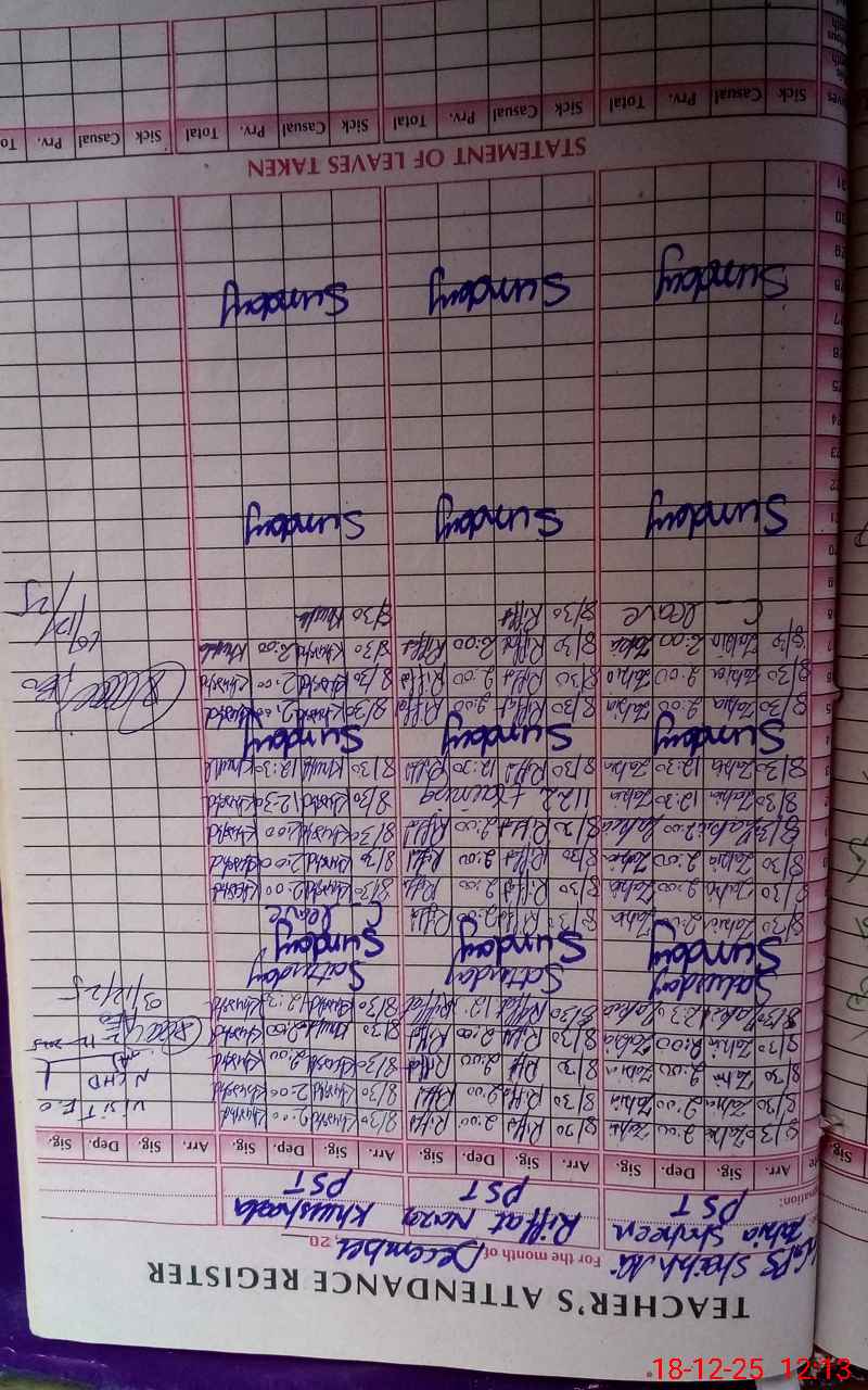 | CNIC | Full Name | Designation | R/C | Absence During Last Calender Month |