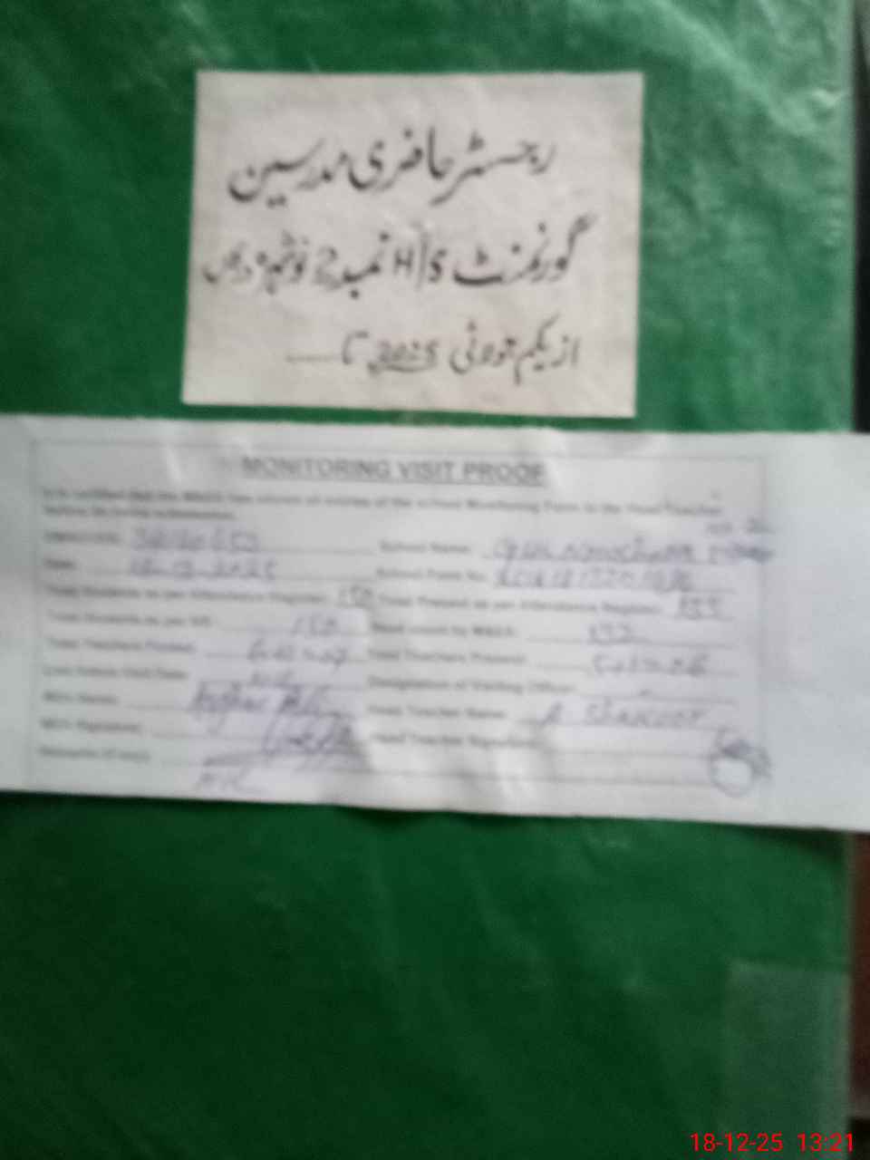 | Attendance Register | Head Teacher | MEA with School | Visit Proof |