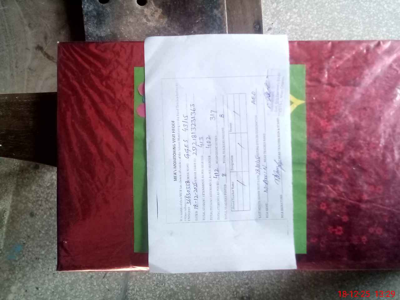 | Attendance Register | Head Teacher | MEA with School | Visit Proof |