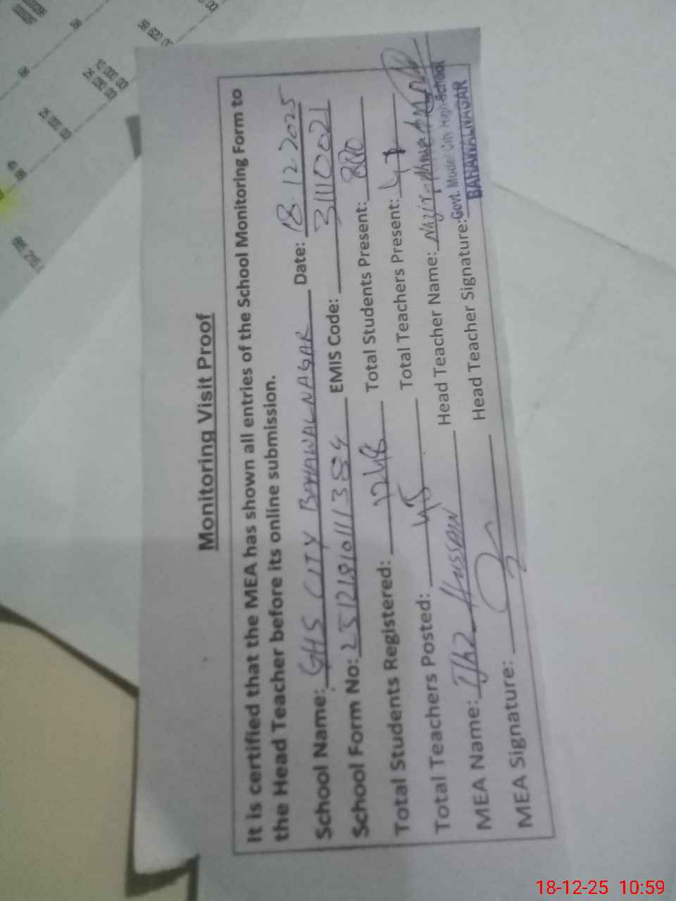 | EMIS Code: 31110021 | Name of School: GHS CITY BAHAWALNAGAR | |||