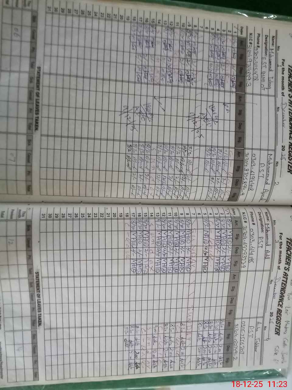 | CNIC | Full Name | Designation | R/C | Absence during last cal. month |