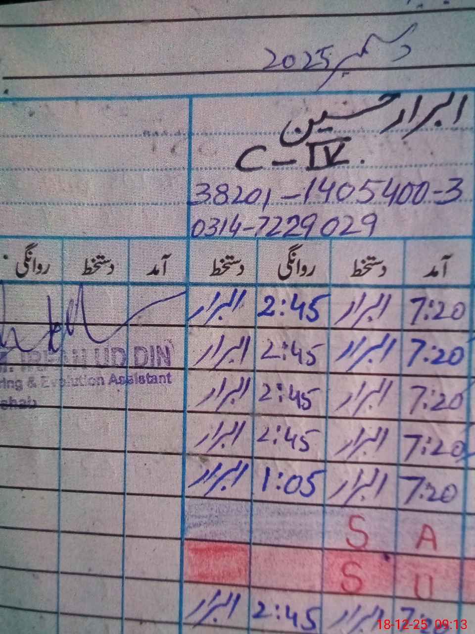 | CNIC | Full Name | Designation | R/C | Absence during last cal. month |