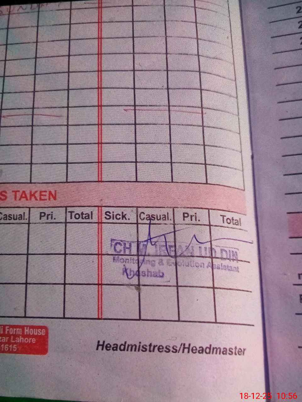 | Attendance Register | Head Teacher | MEA with School | Visit Proof |