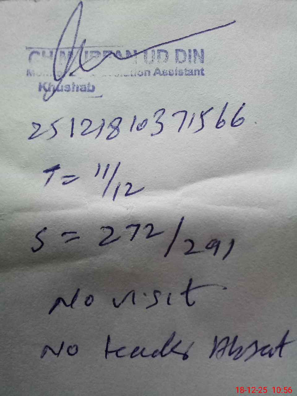 | Remarks (Use Separate Page if Required): student on sis 291 student on register 291 head count 272 no teacher absent one on leave no visit no missing facility | |||||