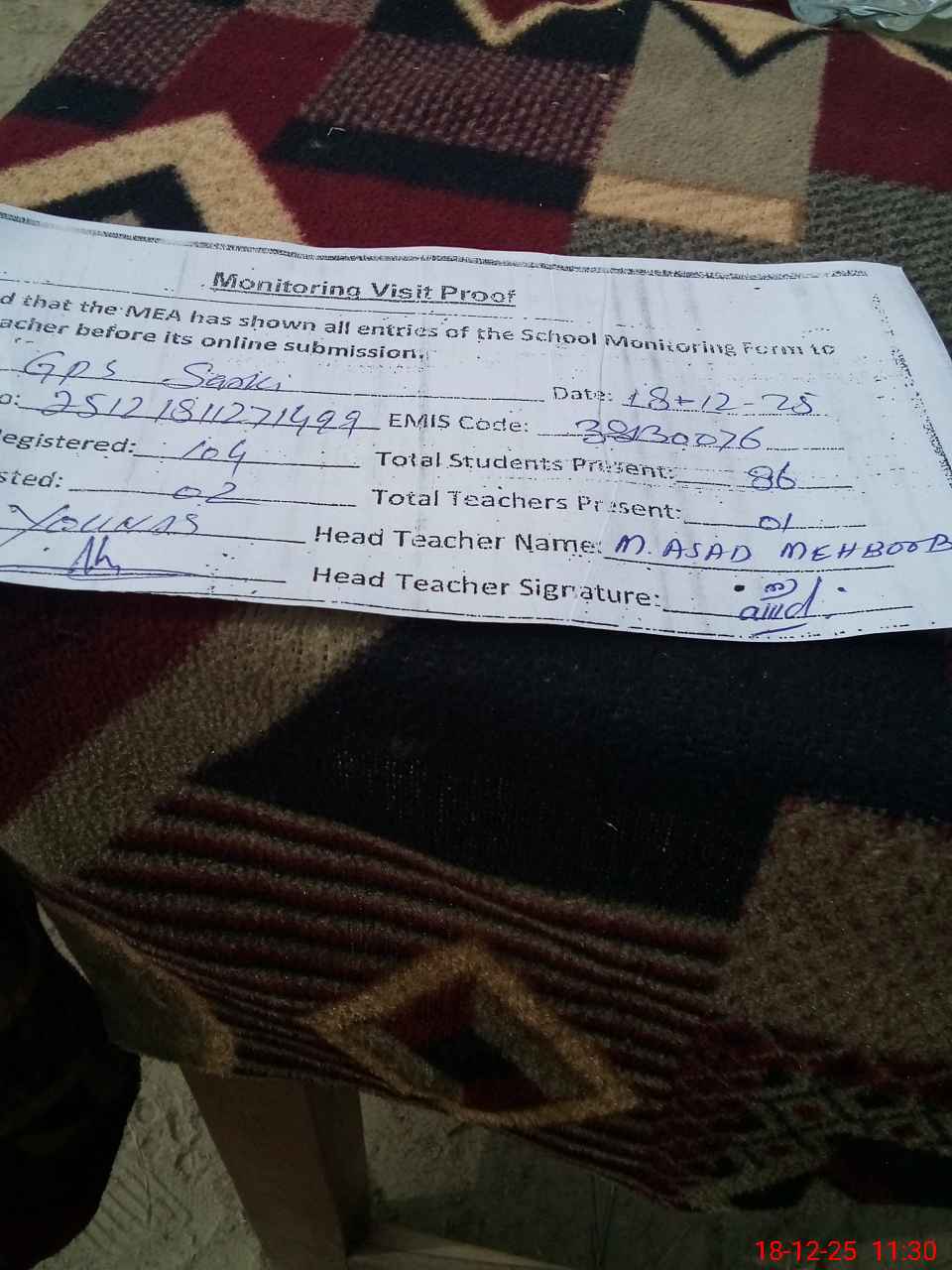 | EMIS Code: 38130076 | Name of School: GPS SARKI | |||