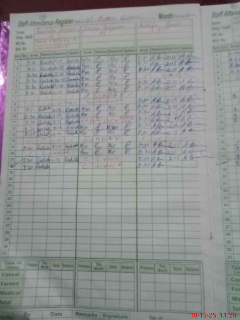 | 34**** | Bu**** Am**** | EST Vernacular | Regular | 2 | 0 | 0 | 0 | 0 | 0 | 0 | 0 | 2 | Absent (Un-Authorized) |
