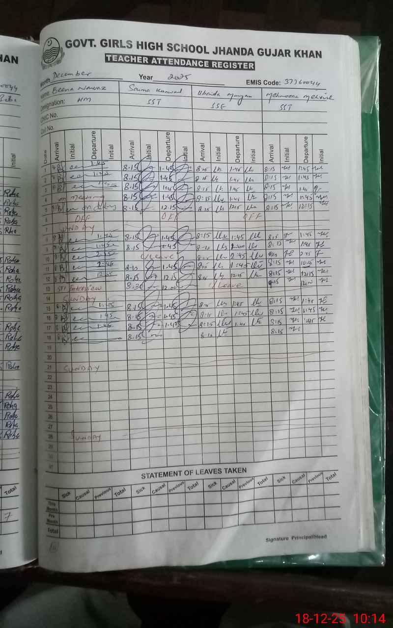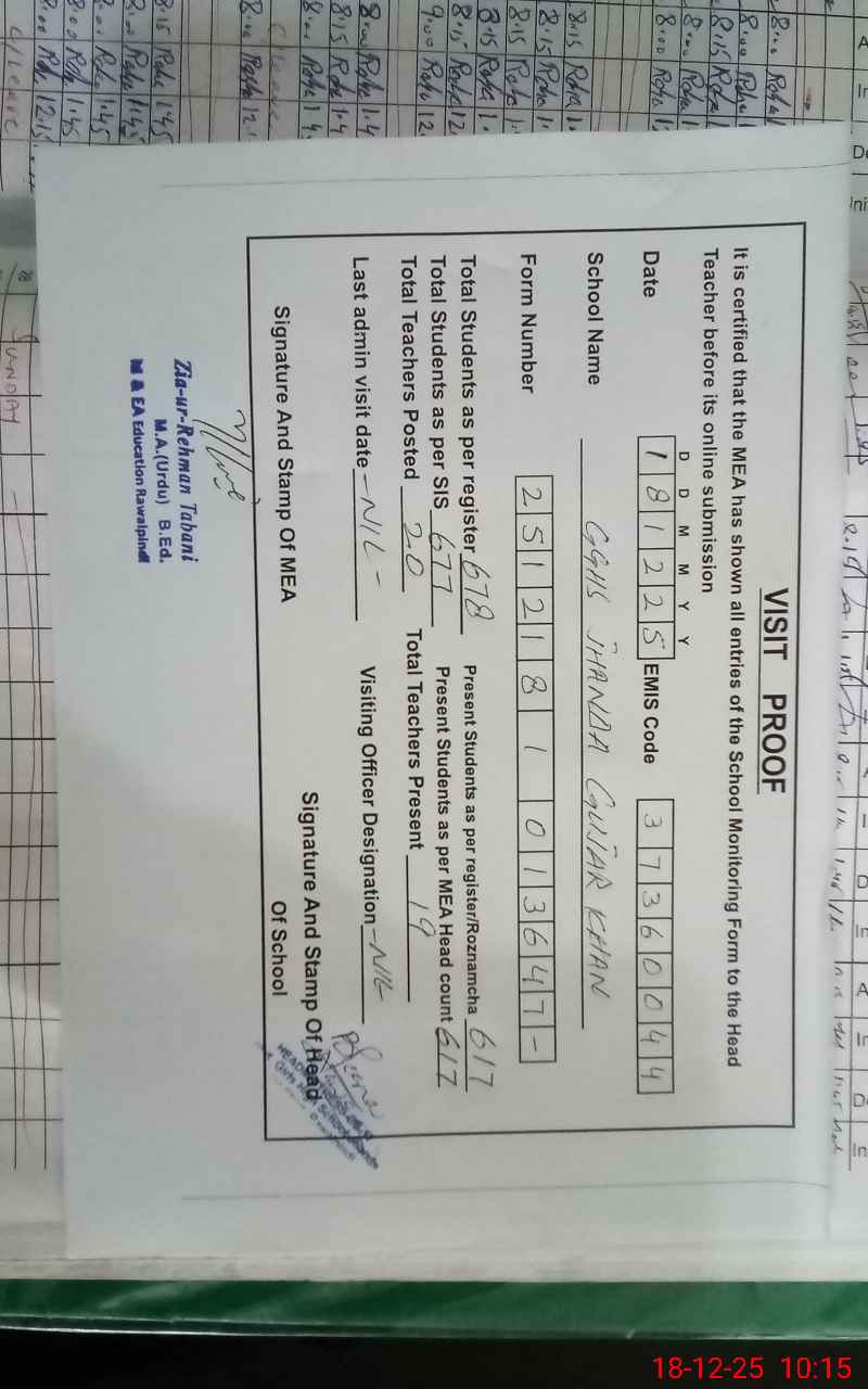 | EMIS Code: 37360044 | Name of School: GGHS JHANDA GUJAR KHAN | |||