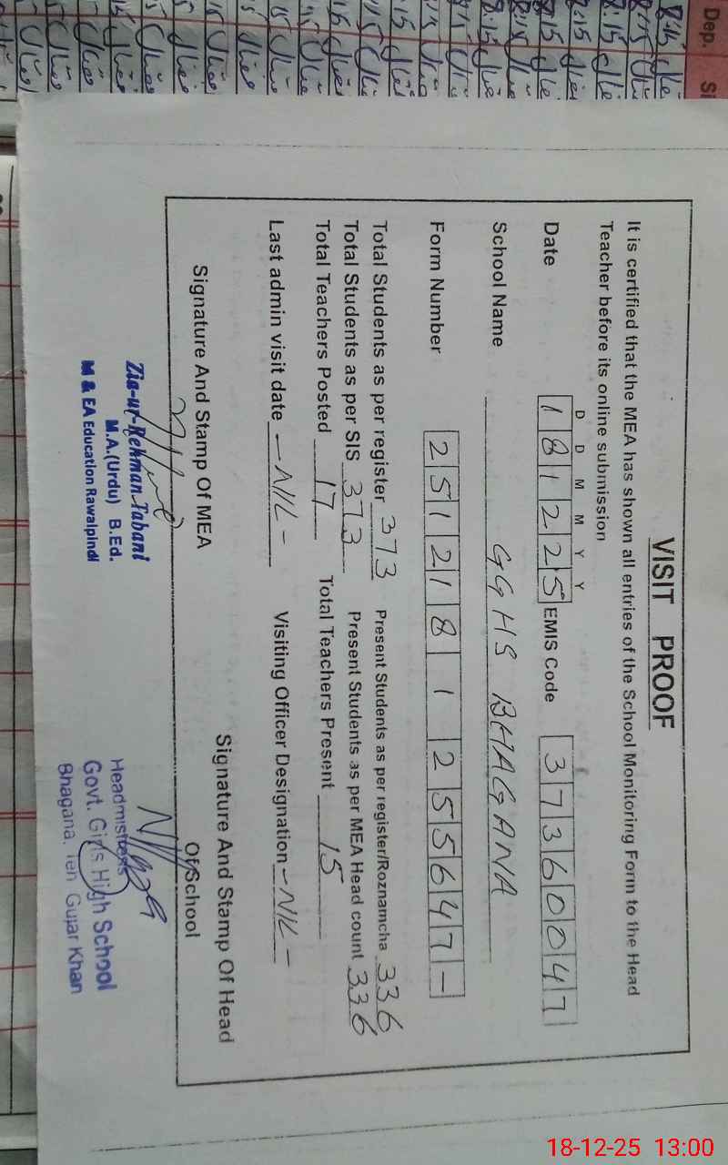 | EMIS Code: 37360047 | Name of School: GGHS BHAGANA | |||