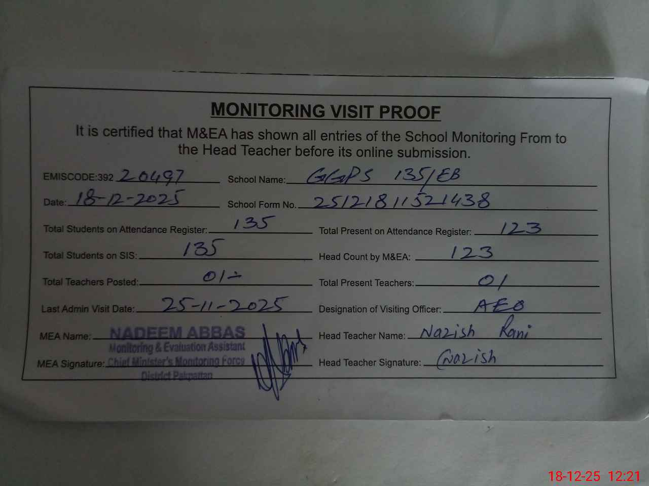 | EMIS Code: 39220497 | Name of School: GGPS 135/EB | |||