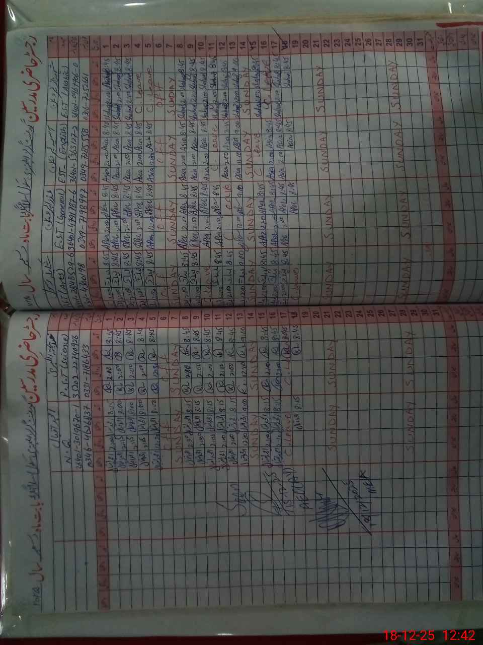 | CNIC | Full Name | Designation | R/C | Absence During Last Calender Month |