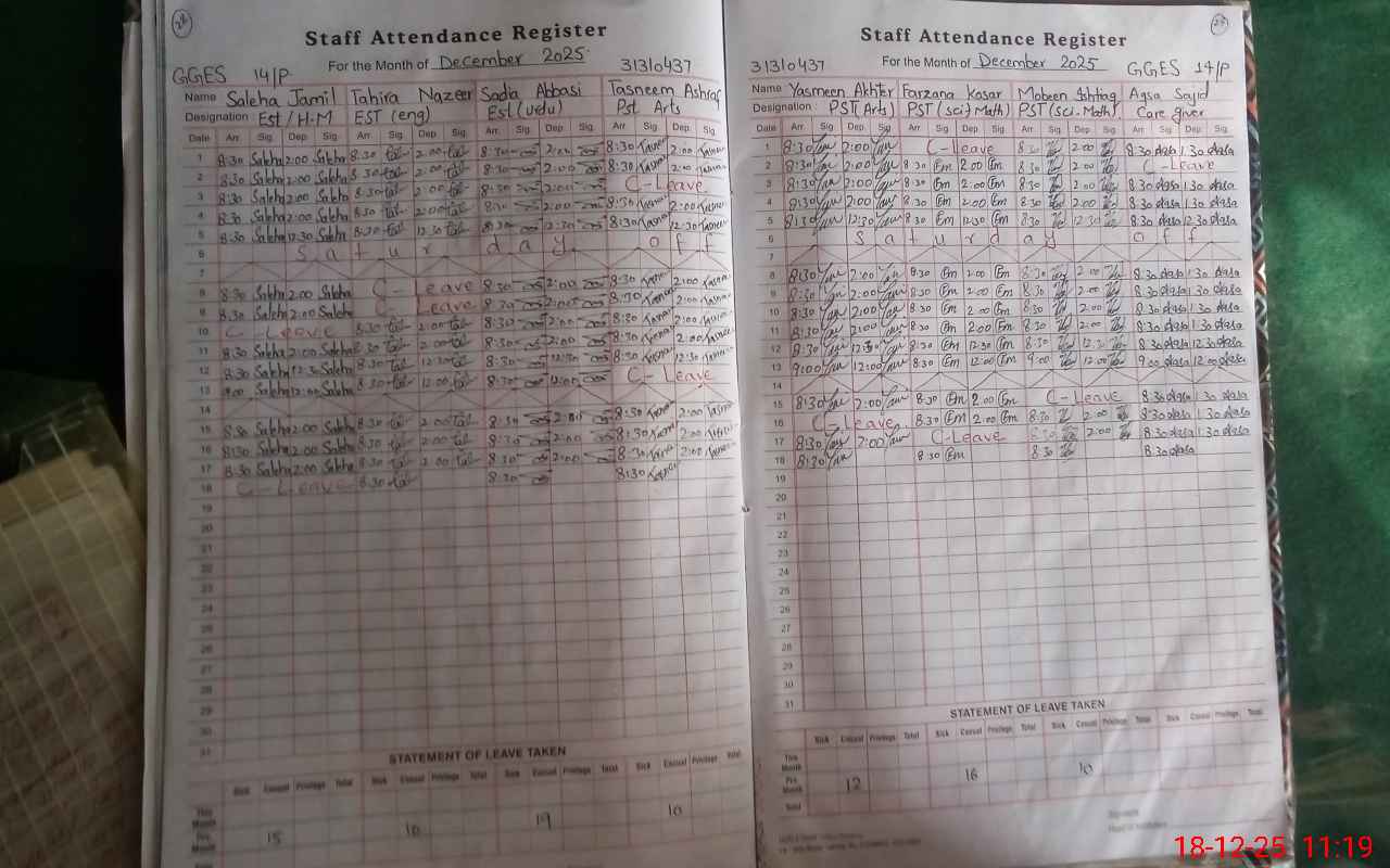 | CNIC | Full Name | Designation | R/C | Absence During Last Calender Month |