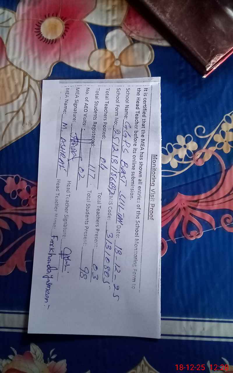 | EMIS Code: 31310805 | Name of School: GGPS BASTI SULTAN | |||