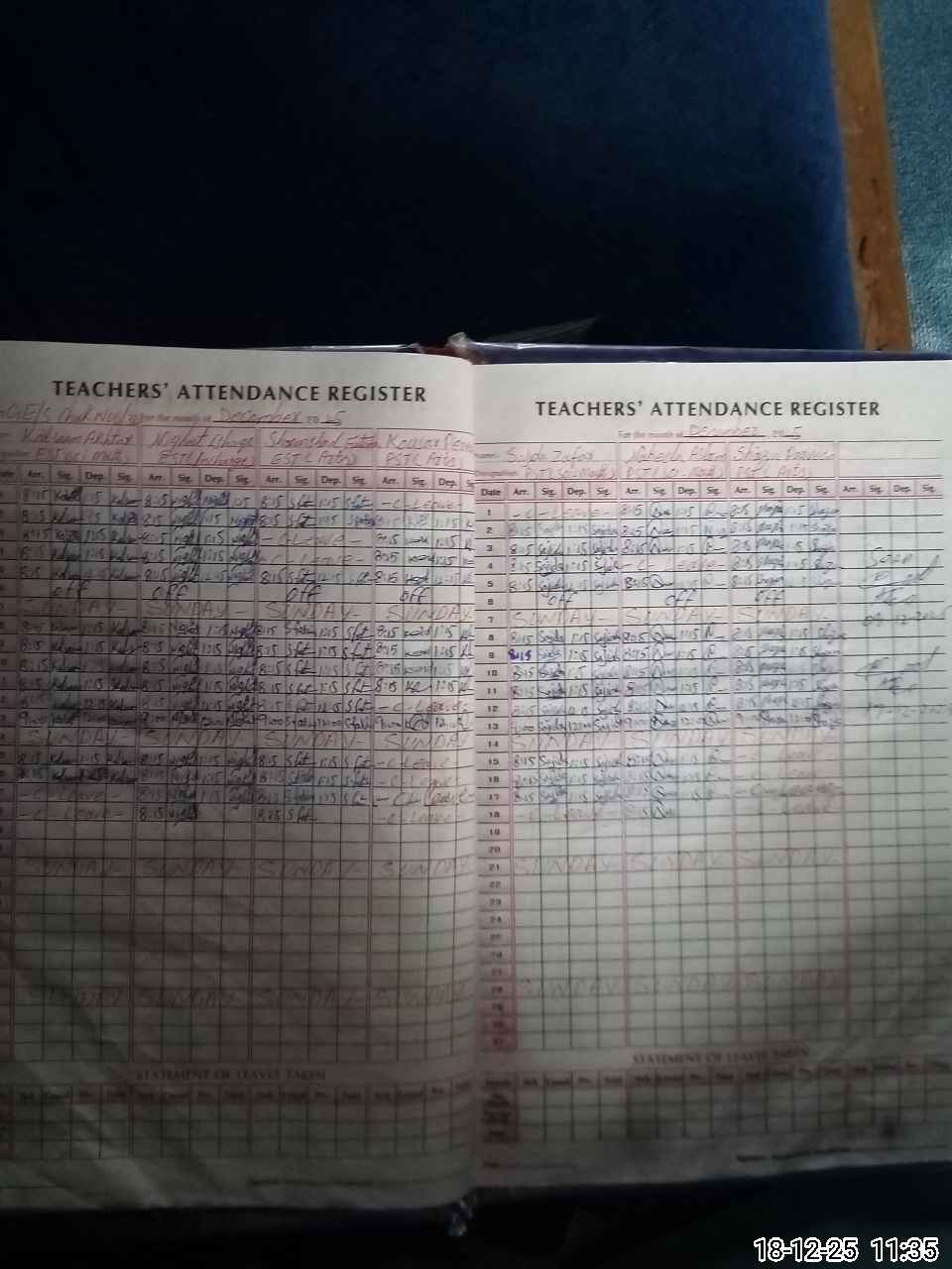 | Remarks (Use Separate Page if Required): PST Shazia perveen running month Dec 04 leave PST sajidab zafar 02 leave in running month EST kallsoom Akhtar 02 leave in running month PST kosar perveen 06 leave in running month all ready in in November 02 leave availed NSB record not updated | |||||