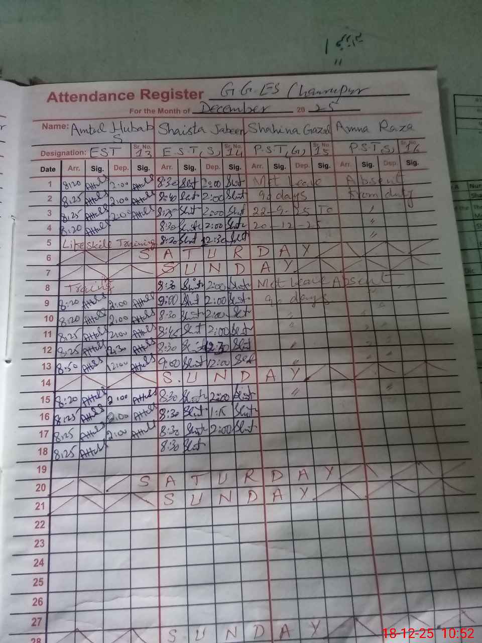 | 35**** | Am**** Ra**** | PST Science/Maths | Regular | 0 | 0 | 30 | 0 | 0 | 0 | 0 | 0 | 0 | Absent (Un-Authorized) |