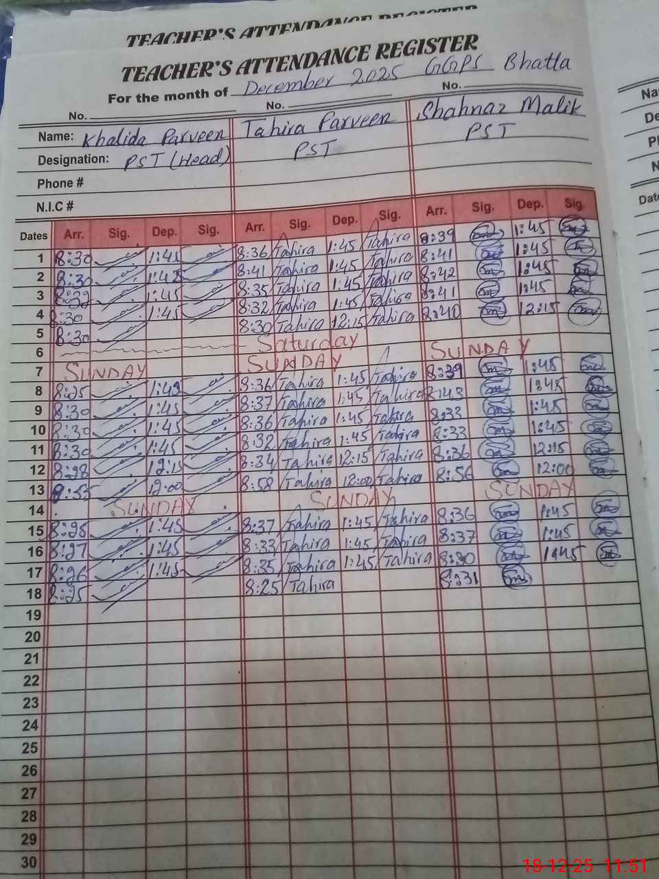 | Name: KH**** PA**** Designation: (School Headmaster's/Headmistress's) Head Mistress Phone/Cell Number: 03**** |