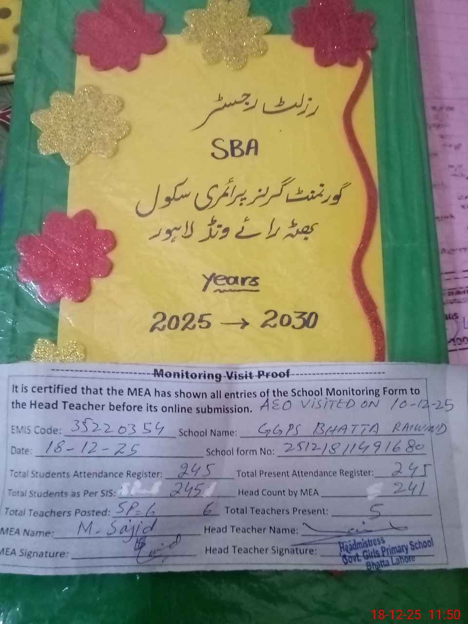 | EMIS Code: 35220354 | Name of School: GGPS BHATTA RAIWIND ROAD | |||