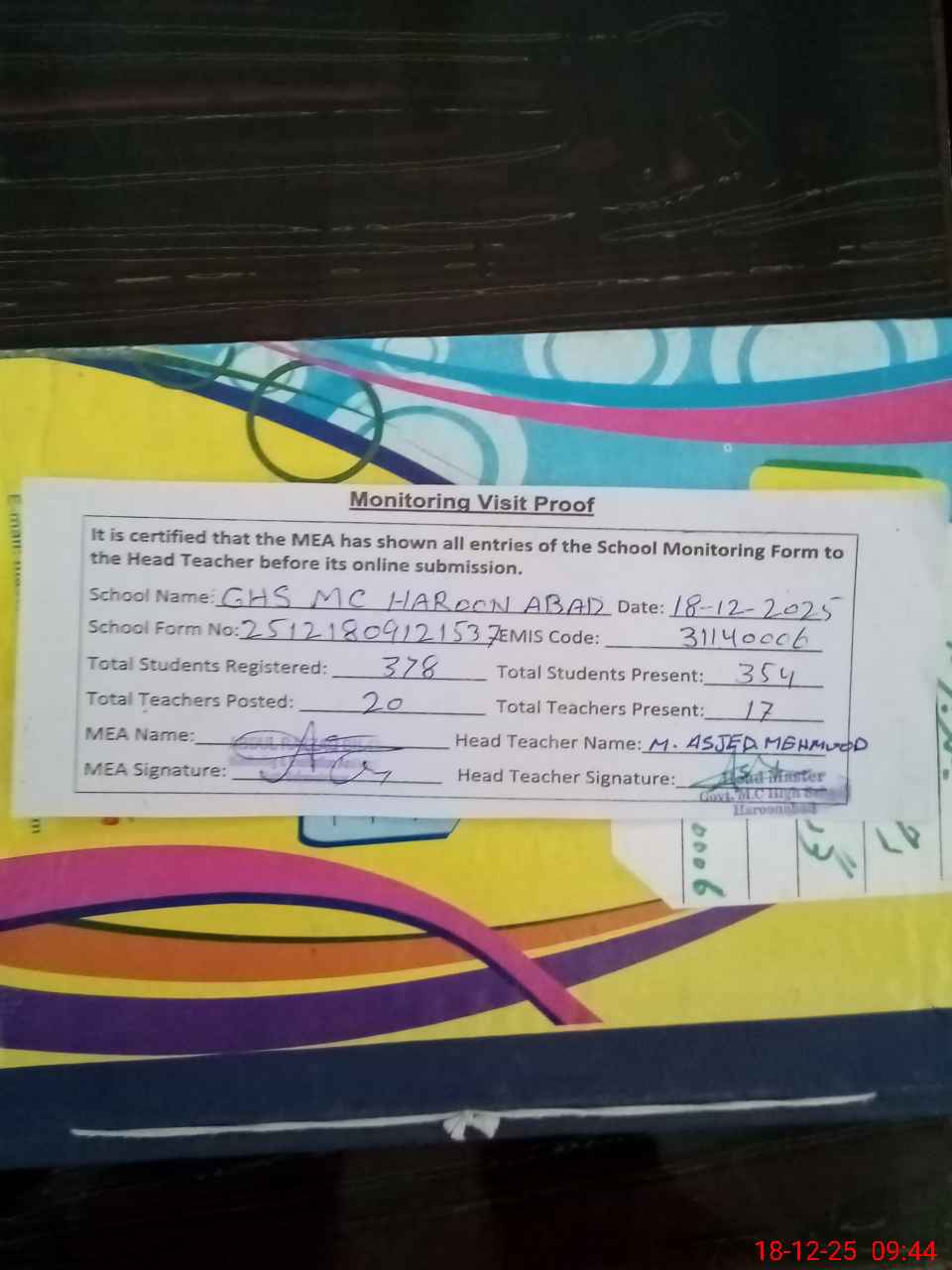 | EMIS Code: 31140006 | Name of School: GHS MC HAROON ABAD | |||
