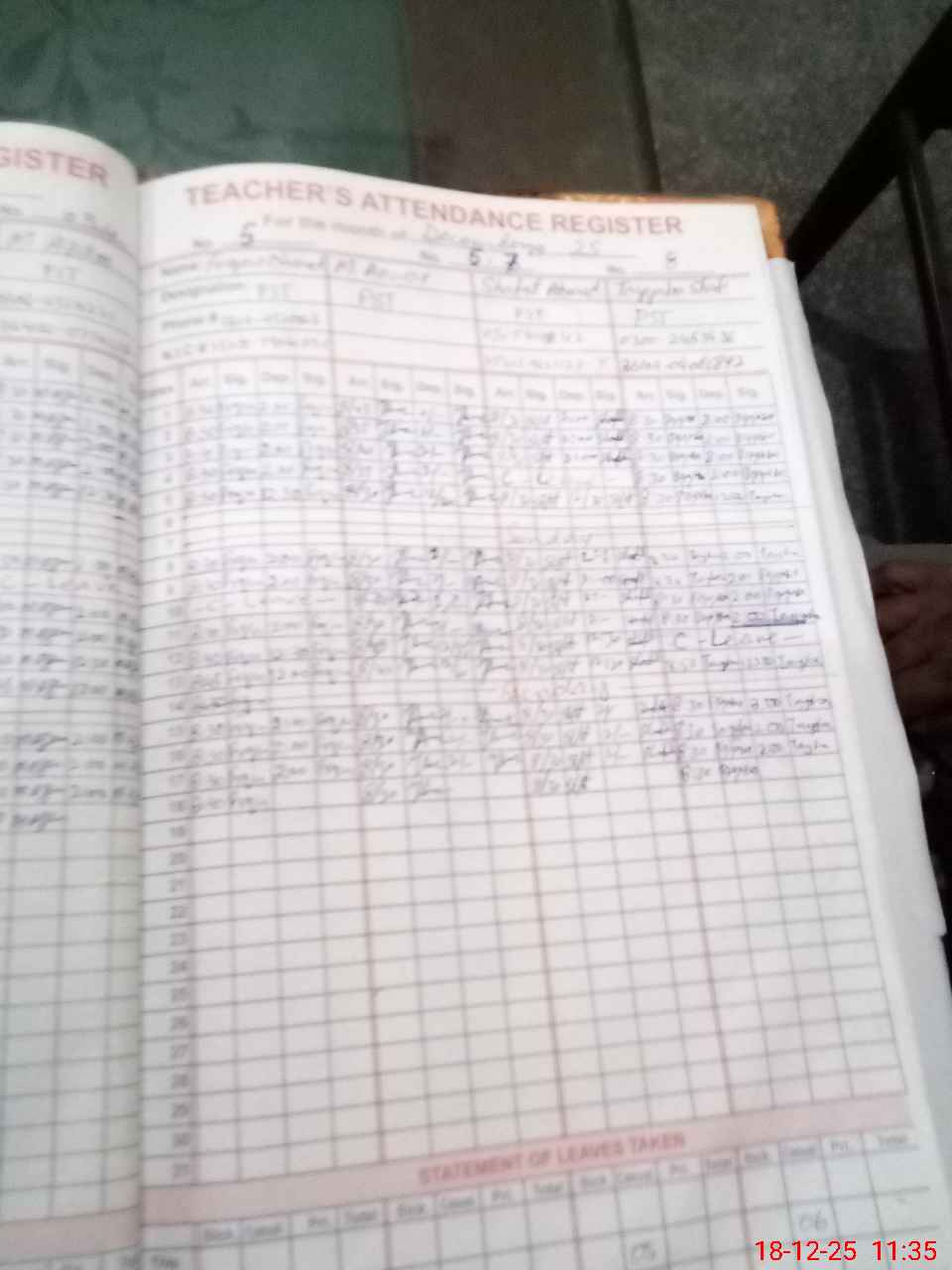 | CNIC | Full Name | Designation | R/C | Absence During Last Calender Month |