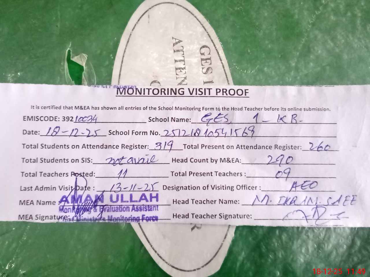 | EMIS Code: 39210034 | Name of School: GES 1 KB P/O PAKPATTAN | |||
