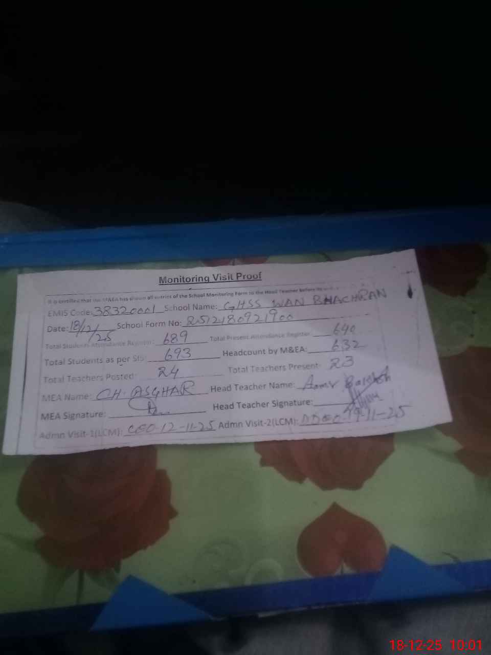 | EMIS Code: 38320001 | Name of School: GHSS WAN BHACHRAN | |||