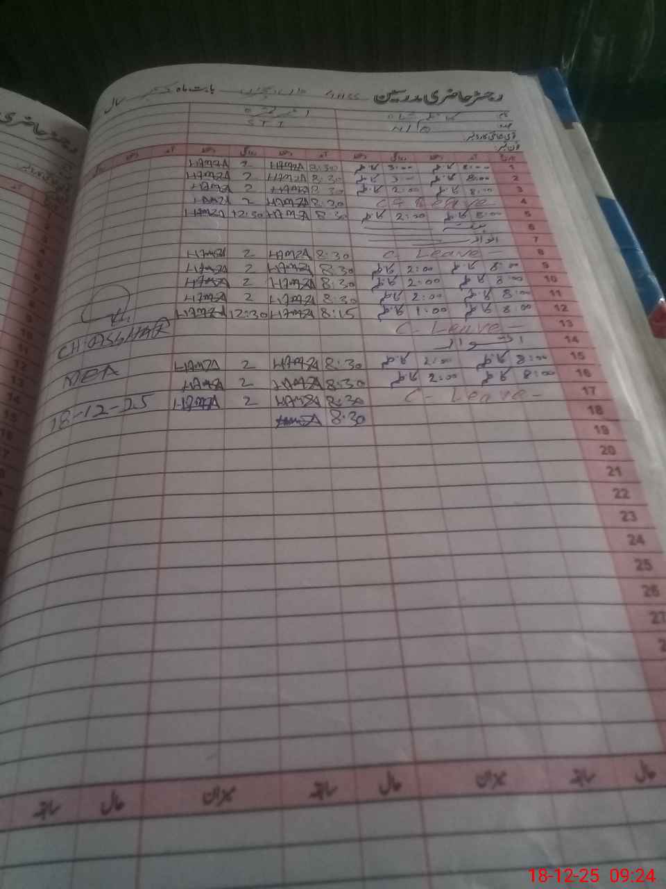 | 00**** | MKa**** Sh**** | NAIB QASID | 0 | 0 | 0 | 0 | 0 | 0 | 0 | 0 | 0 | Absent (Un-Authorized) | |
