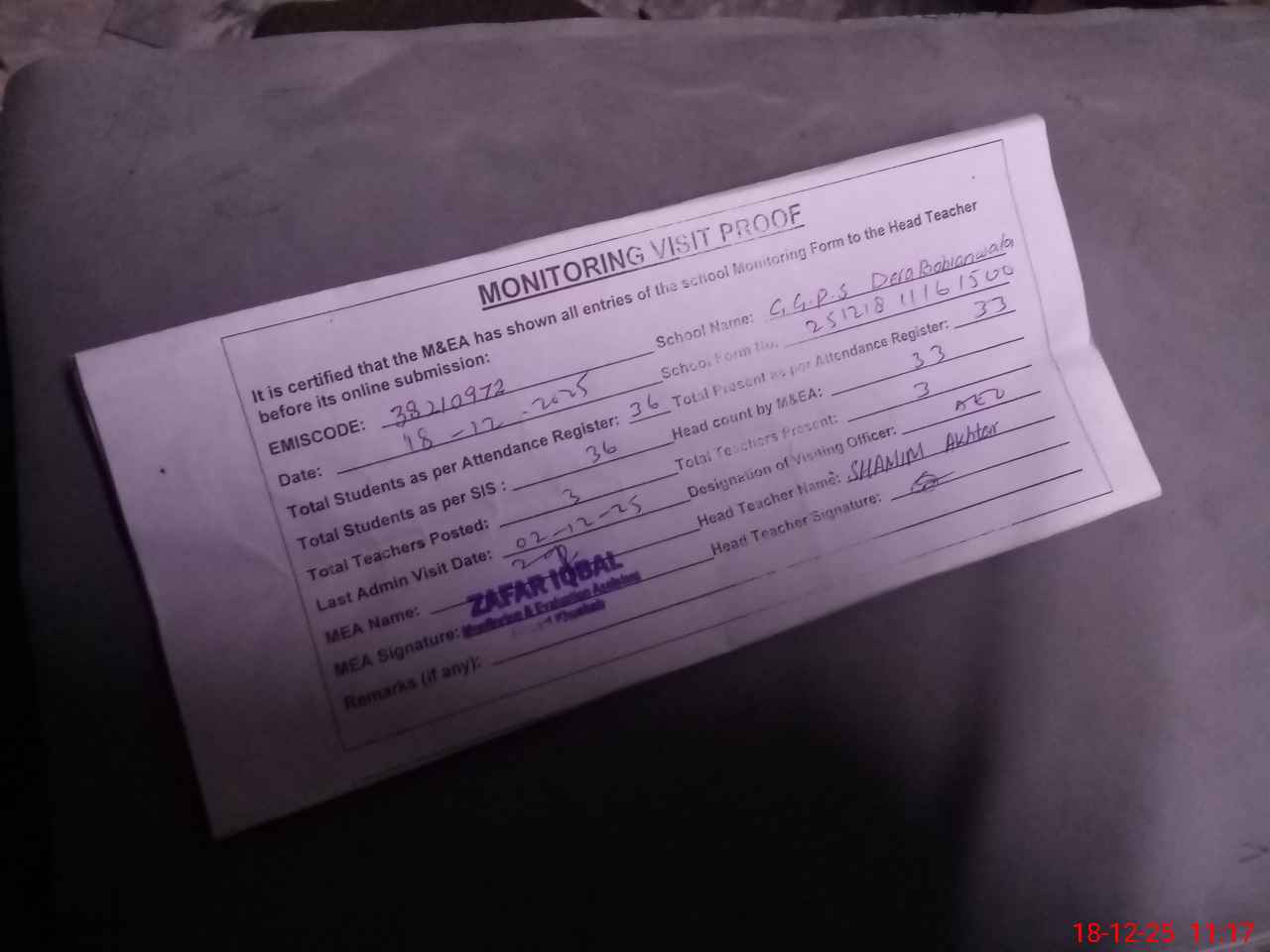 | EMIS Code: 38210972 | Name of School: GGPS BOBINAWALA (NEW) | |||