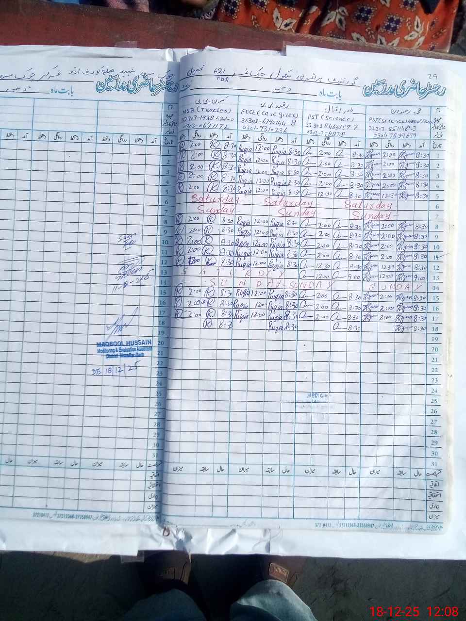 | Name: M.**** Designation: (School Headmaster's/Headmistress's) PST/PTC/JV Phone/Cell Number: 03**** |