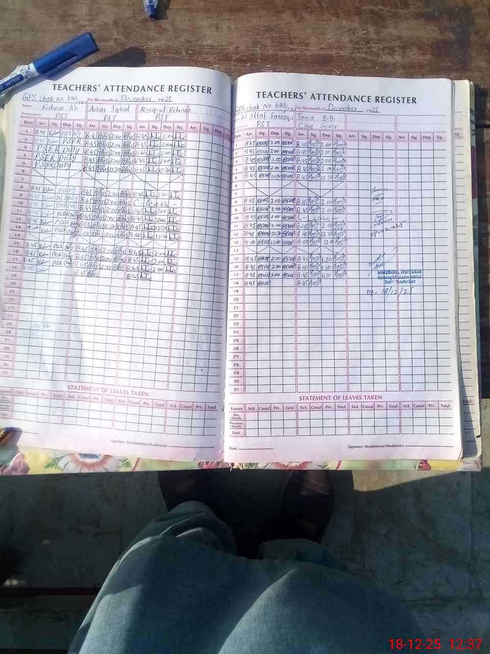| Name: KI**** AL**** Designation: (School Headmaster's/Headmistress's) PST/PTC/JV Phone/Cell Number: 03**** |
