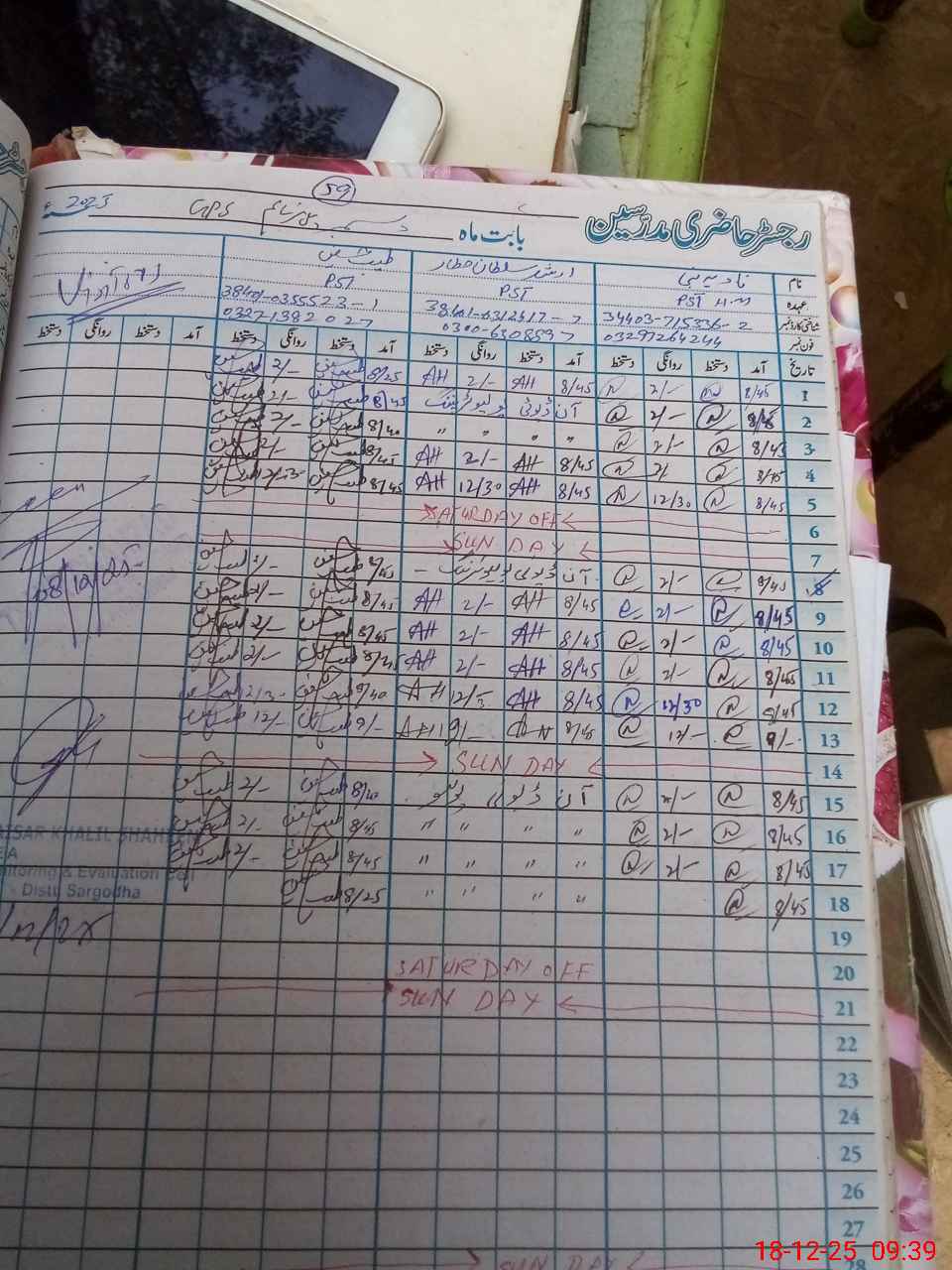 | CNIC | Full Name | Designation | R/C | Absence during last cal. month |