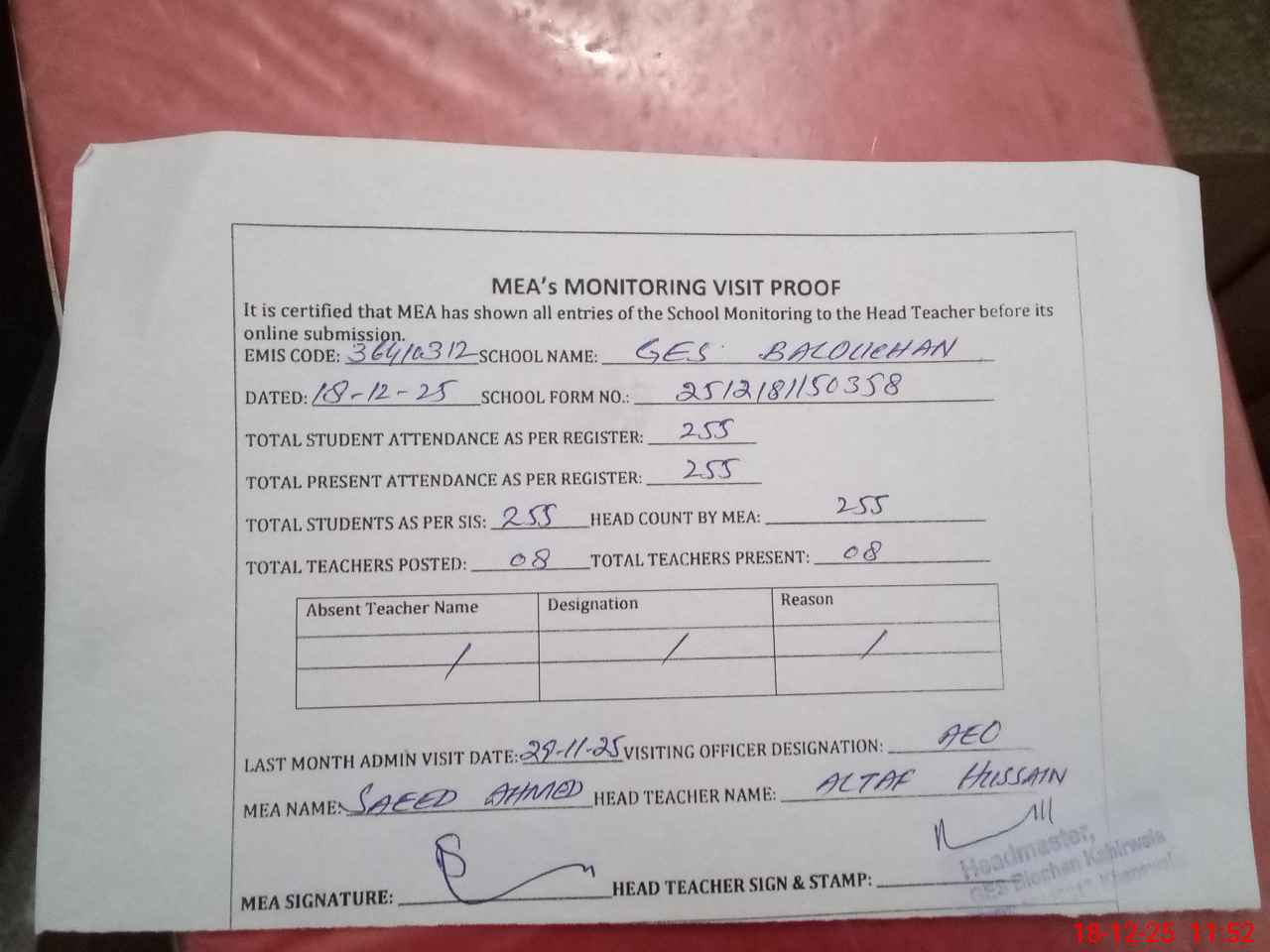 | EMIS Code: 36410312 | Name of School: GES BALOCHAN, NAWAN SHEHR | |||