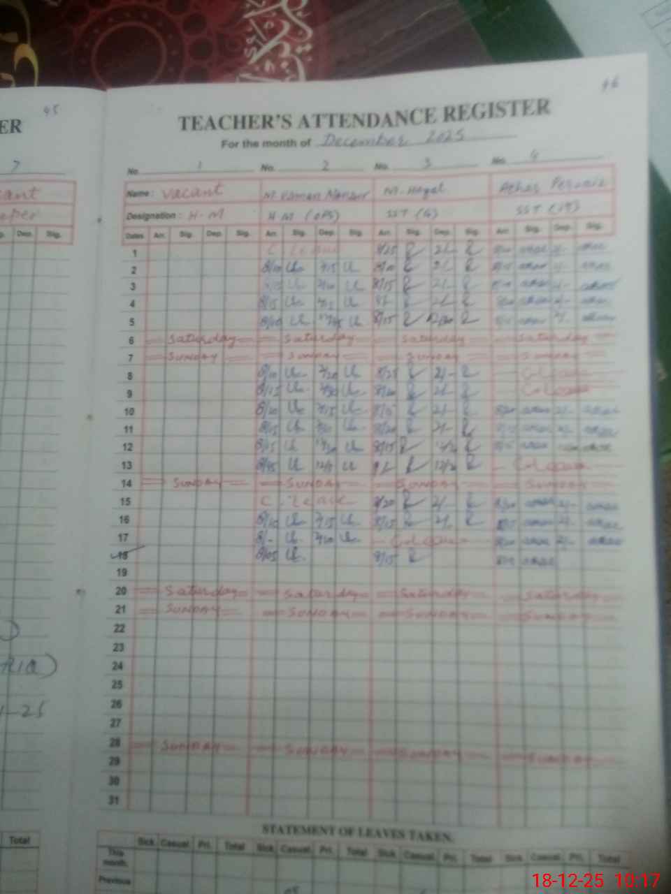 | 36**** | Mu**** Am**** Mu**** | PST Science/Maths | Regular | 0 | 0 | 30 | 0 | 0 | 0 | 0 | 0 | 0 | Absent (Un-Authorized) |