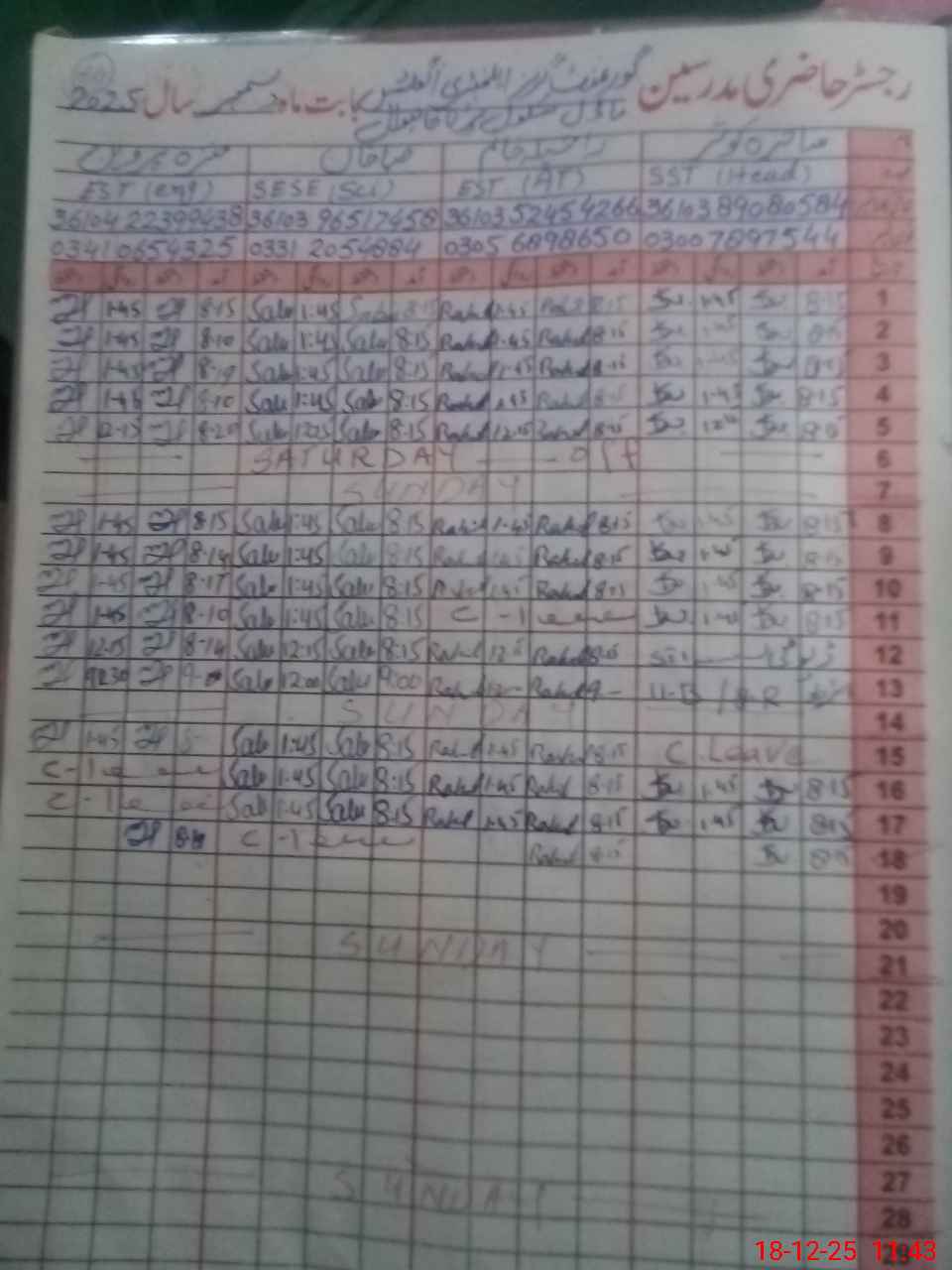 | 36**** | Sh**** Kh**** | PST | Regular | 2 | 0 | 0 | 0 | 0 | 0 | 0 | 0 | 2 | Casual |
