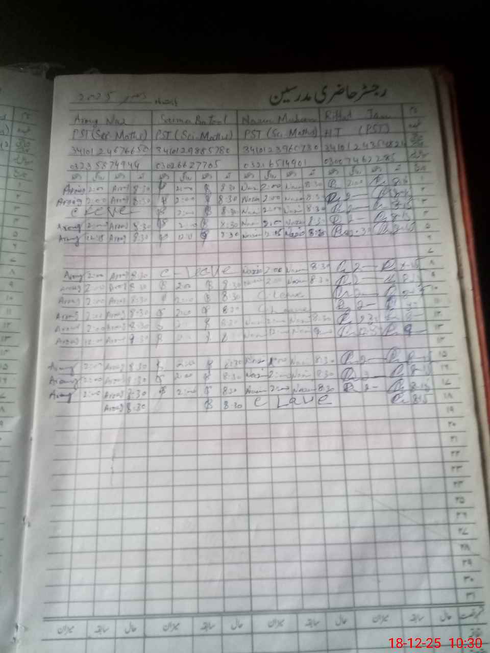 | 34**** | Mu**** Ab**** | ESE Science | Contract | 0 | 0 | 0 | 0 | 0 | 0 | 0 | 0 | 0 | Absent (Un-Authorized) |