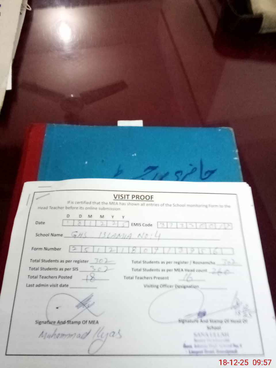 | EMIS Code: 37330017 | Name of School: GHS ISLAMIA NO. 4 | |||