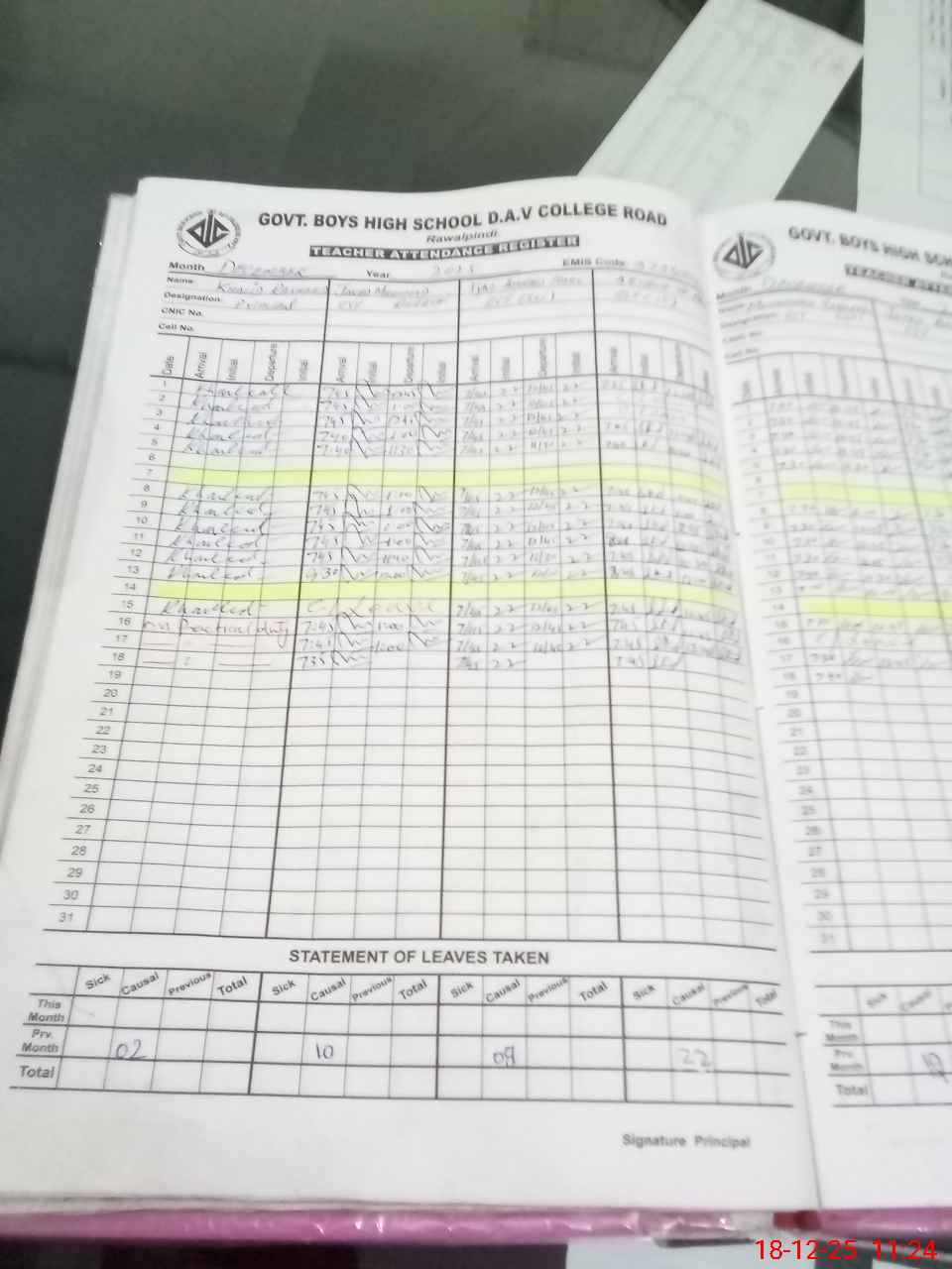 | CNIC | Full Name | Designation | R/C | Absence during last cal. month |