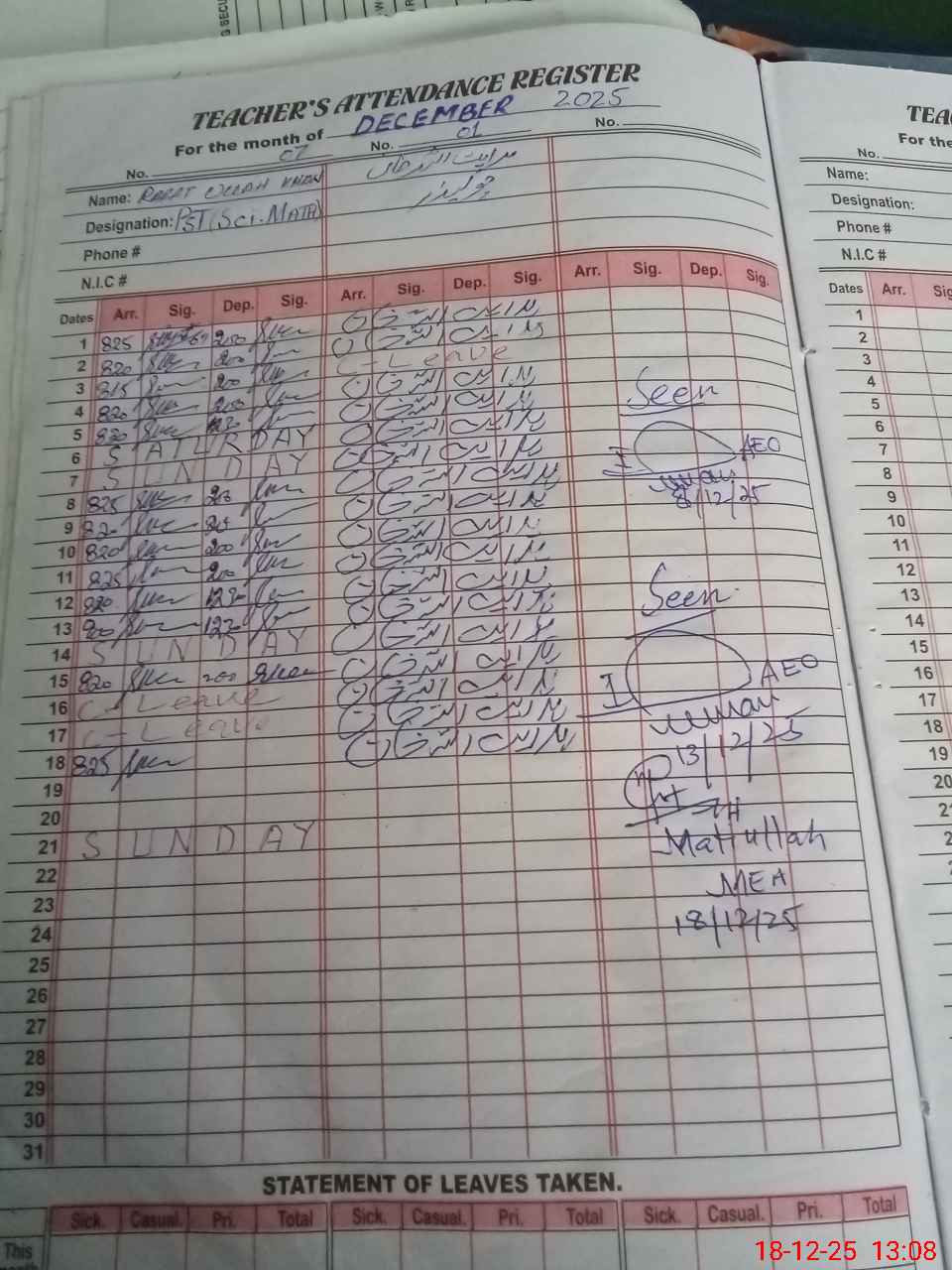 | Name: Mu**** Ak**** Kh**** Designation: (School Headmaster's/Headmistress's) SSE ( ENGLISH ) Phone/Cell Number: 03**** |