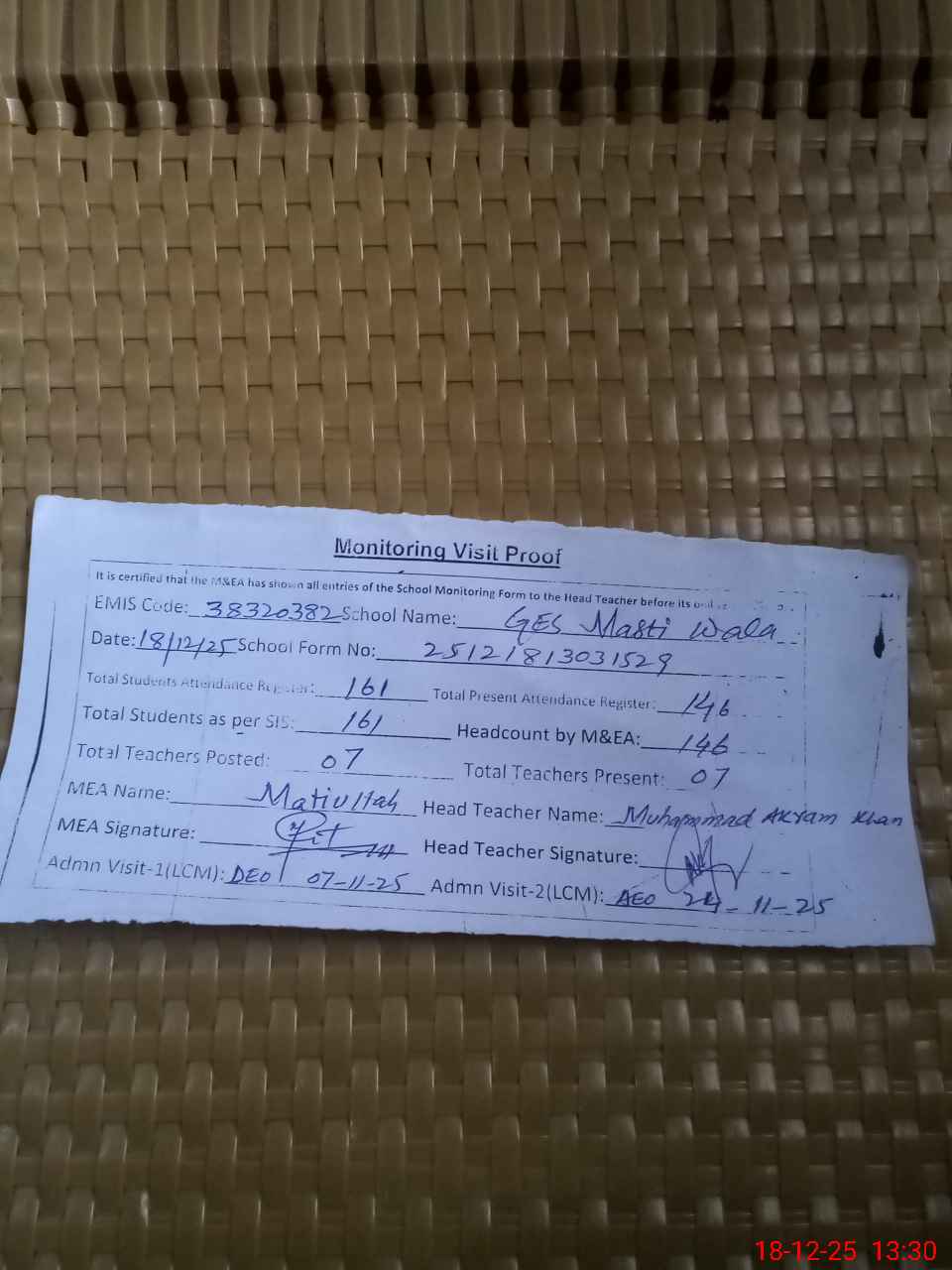 | EMIS Code: 38320382 | Name of School: GES MASTI WALA | |||