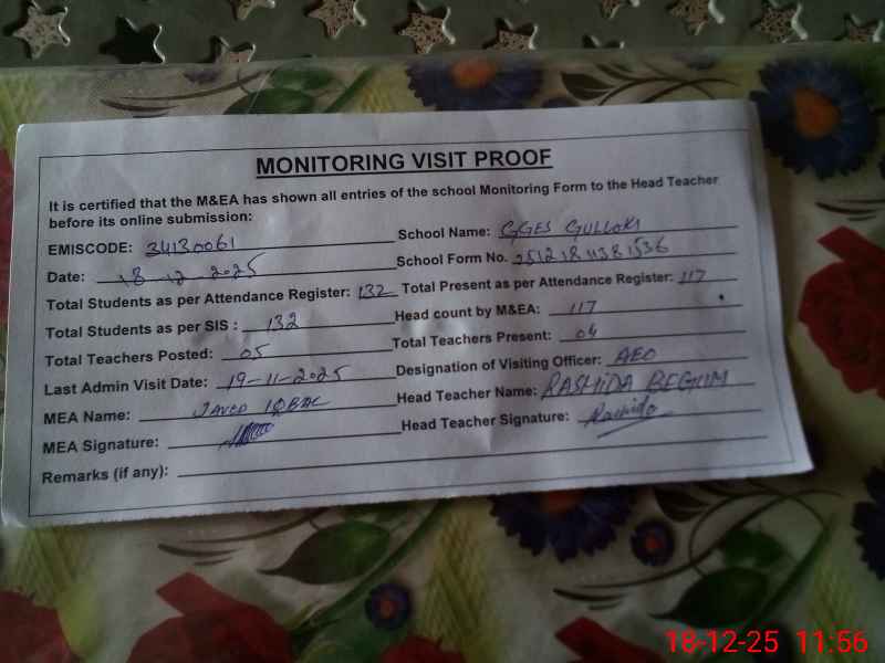 | Attendance Register | Head Teacher | MEA with School | Visit Proof |