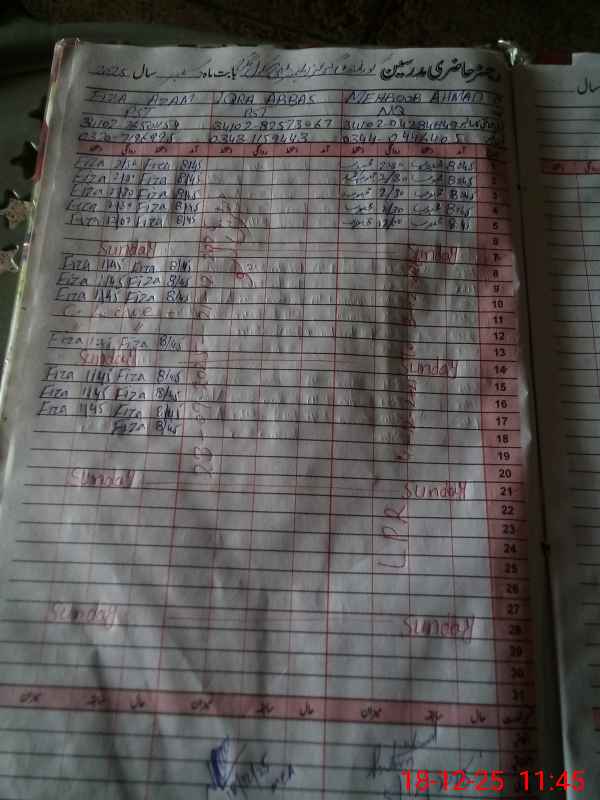 | CNIC | Full Name | Designation | R/C | Absence During Last Calender Month |