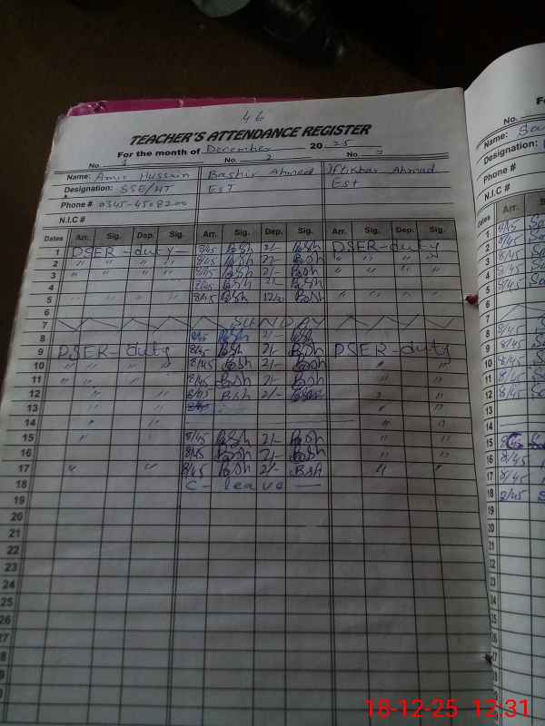 | Name: AM**** HU**** Designation: (School Headmaster's/Headmistress's) SSE(English) Phone/Cell Number: 03**** |
