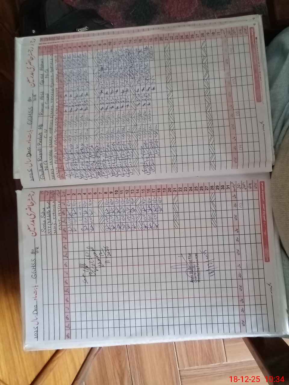 | CNIC | Full Name | Designation | R/C | Absence During Last Calender Month |