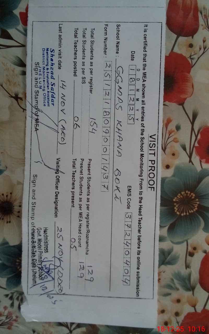 | EMIS Code: 37240404 | Name of School: GGMPS KHANA BOKI | |||