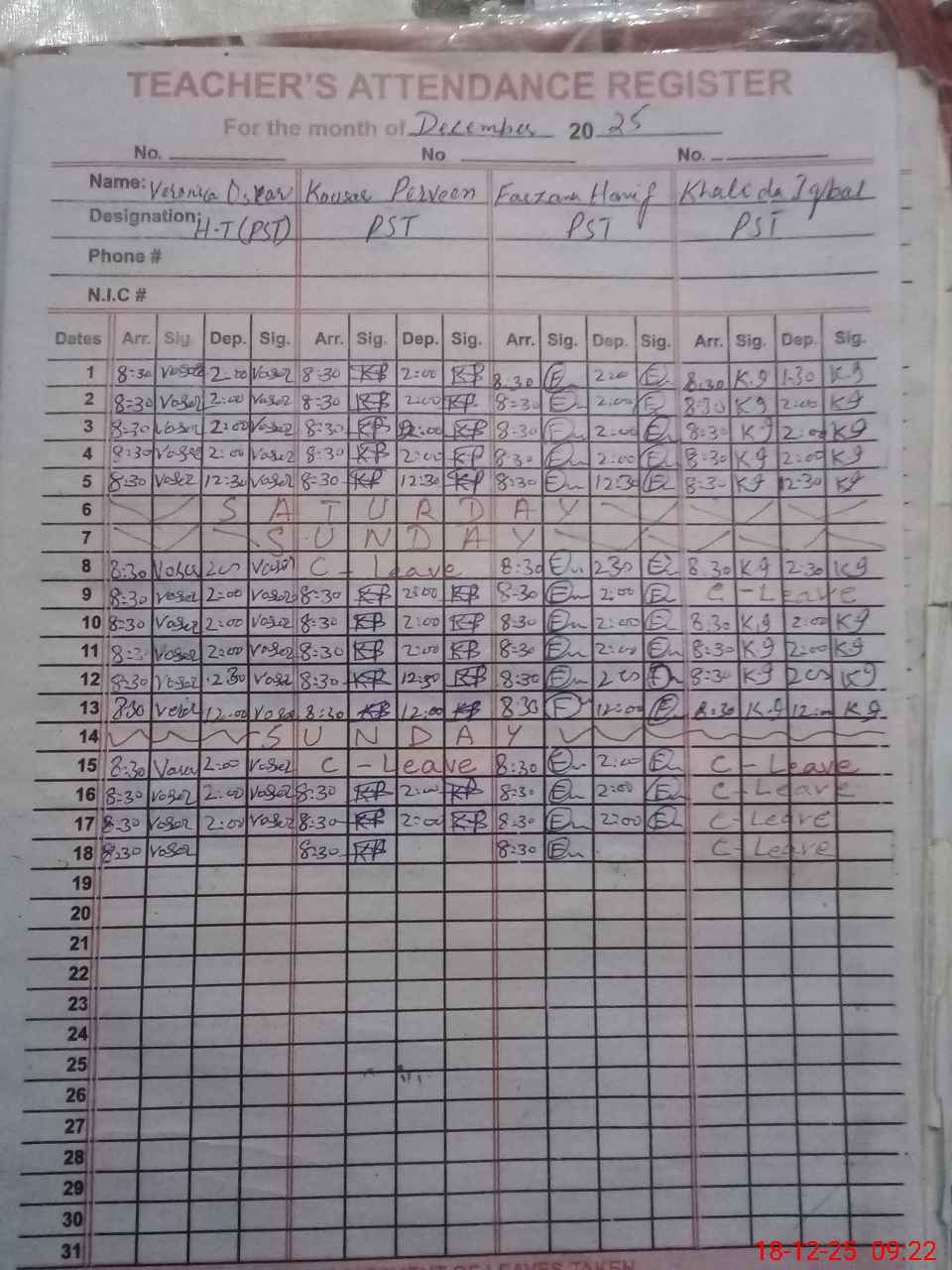 | 31**** | Kh**** Iq**** | PST Arts | Regular | 3 | 0 | 0 | 0 | 0 | 0 | 0 | 0 | 3 | Casual |