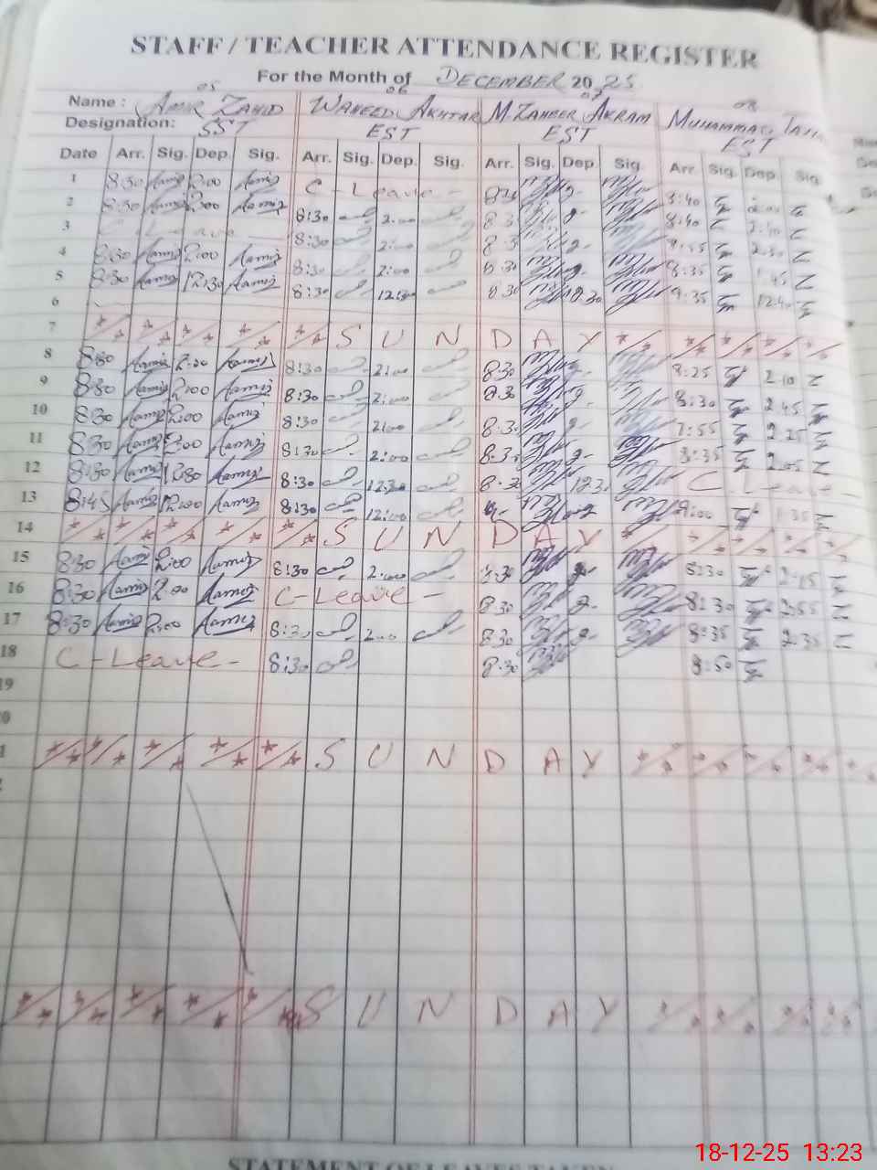 | 37**** | Aa**** Za**** | SST Science | Regular | 0 | 0 | 0 | 0 | 0 | 0 | 0 | 0 | 0 | Casual |