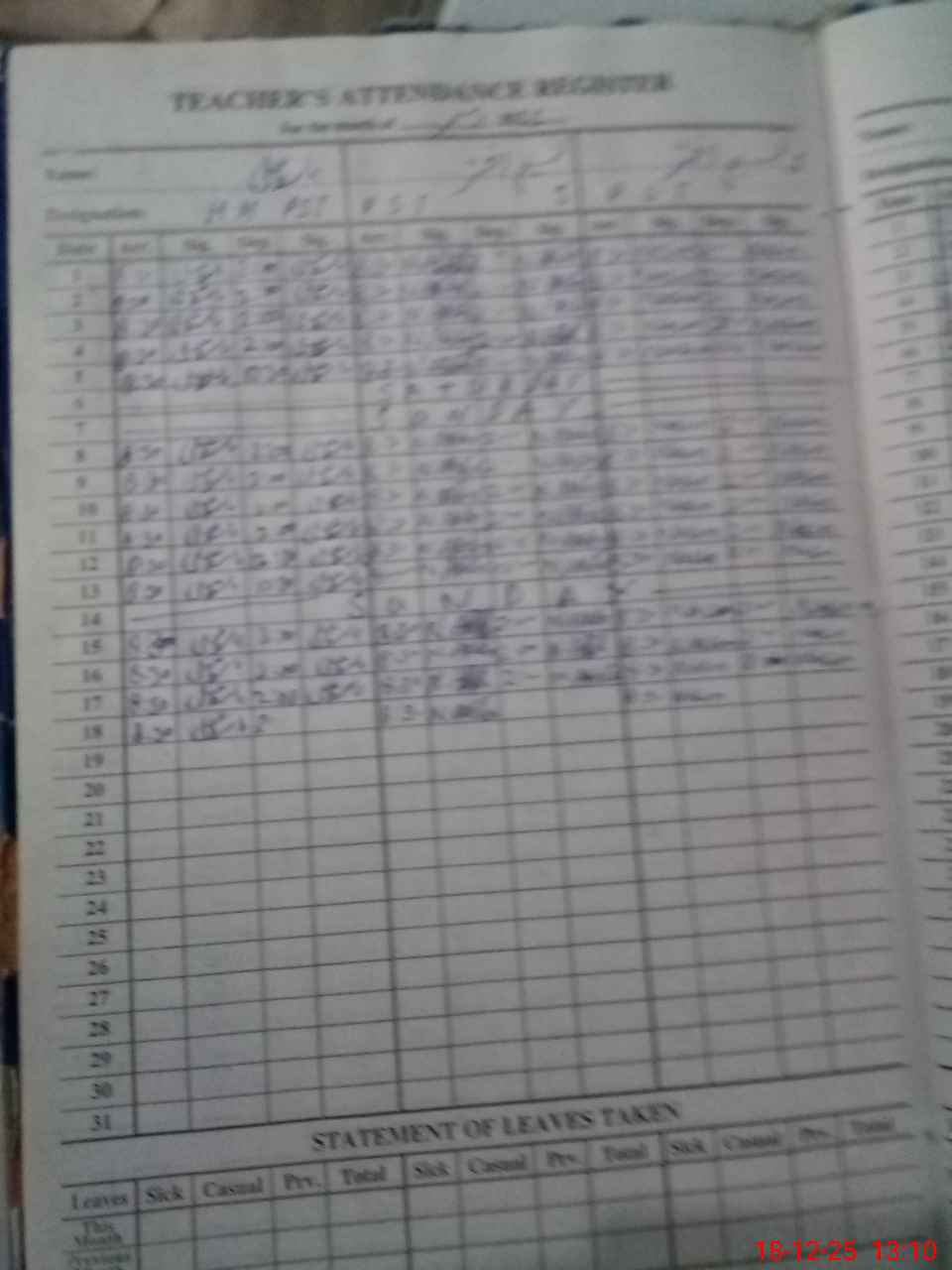 | CNIC | Full Name | Designation | R/C | Absence During Last Calender Month |