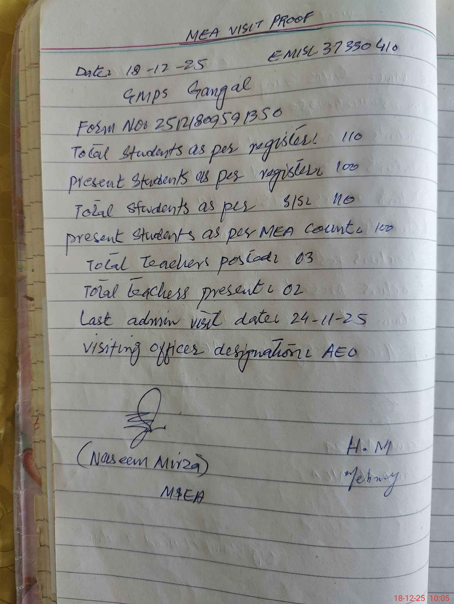 | EMIS Code: 37330410 | Name of School: GMPS GANGAL | |||
